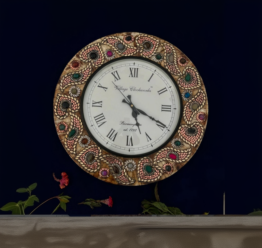 The Lykya Royale™ Wall Clock is a statement of refined luxury, crafted entirely by hand using bone engraving and inlay artistry. Every detail is patiently engraved, forming elegant motifs enhanced with rich ornamental accents.